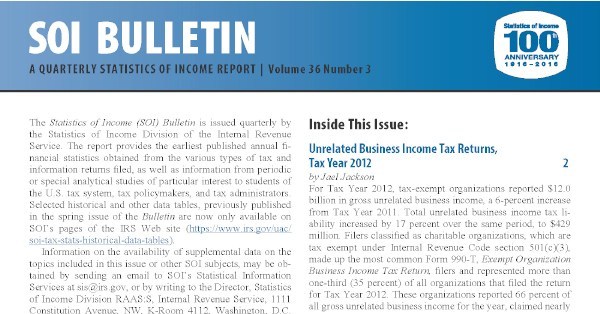 The Internal Revenue Service announced today that the Spring 2019 Statistics of Income Bulletin is now available on IRS.gov. The SOI Division produces the online Bulletinquarterly, providing the most recent data available from various tax and information returns filed by U.S. taxpayers. This issue includes articles on the following topics: